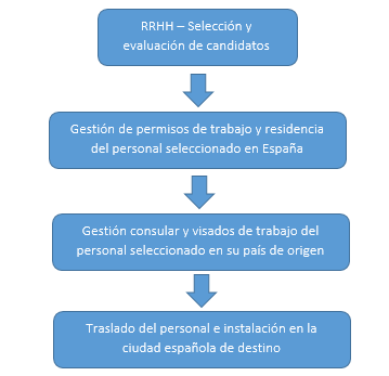 Una vez obtenida las resoluciones de concesión de residencia y permiso de trabajo del profesional seleccionado. Nuestras oficinas y representaciones en sudamérica gestionaran directamente los visados de trabajo.